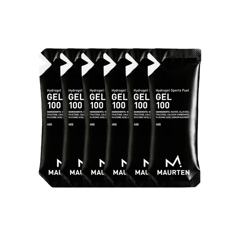 Maurten GEL 100 is a unique biopolymer matrix, made with an equally unique blend of fructose and glucose (0.8:1). This formulation enables uptakes of up to 100g of carbohydrates per hour. It instantly converts to hydrogel in the stomach and allows a smooth journey through the stomach to the intestine, where water, salt and carbohydrates are absorbed. The Hydrogel Technology creates a firmer structure ,not a runny syrup like traditional energy gels, so it's easier to consume during the race.